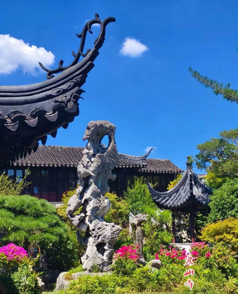 留园的峰石景观独具风采,导游介绍说,很多是名贵的太湖石,冠云峰就是其中最出名的一块,高6.5米,集“廋、皱、漏、透”四奇一身,它的故事千回百转。