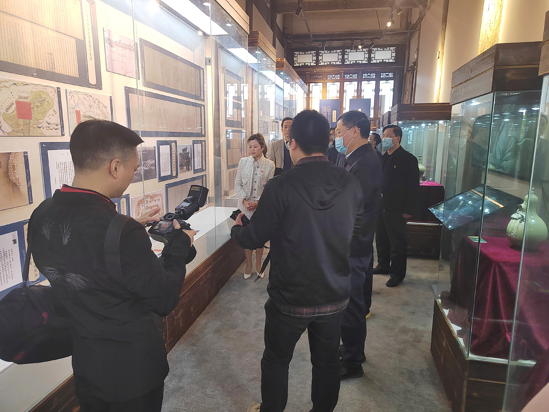 袁毅一行实地参观了闽台历史文化研究院举办的“清宫珍档,情系闽台”档案图片展和“青在当下——台湾何志隆翡翠青瓷”作品展,仔细察看“闽台行政一体化”的历史档案记录,深入了解闽台伉俪柴烧青瓷技艺的研发传承情况。调研中,袁毅还听取闽台历史文化研究院工作情况汇报,并对闽台历史文化研究院建设给予高度肯定。