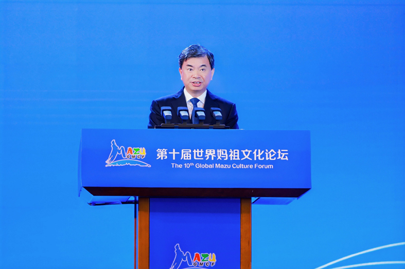 周祖翼表示,妈祖文化以“立德、行善、大爱”的精神感召世人,成为中华优秀传统文化和世界海洋文明的重要组成部分。世界妈祖文化论坛的连续成功举办,有力推动弘扬妈祖文化、促进文明交流互鉴。福建将深入学习贯彻习近平文化思想,学习贯彻中共二十届四中全会精神,持续提升文化影响力、展示福建新形象。要进一步加强妈祖文化的保护传承和研究阐释,发挥妈祖文化的精神纽带作用,广泛凝聚侨心侨智侨力,促进两岸同胞心灵契合。要进一步开展形式多样的国际传播与交流活动,向世界生动讲述妈祖故事、中国故事,助力构建人类命运共同体。