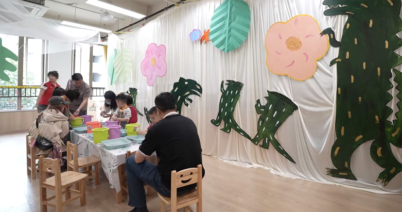 幼儿园为孩子们打造了12个各具特色的“故事游园馆”,引导孩子们在《小蝌蚪找妈妈》《西游记》等经典童话故事中感受真、善、美;在闽都故事、福文化故事中了解福州的民俗文化,萌发爱家乡的情感;在《鸡毛信》等红色故事中感受英雄的力量……