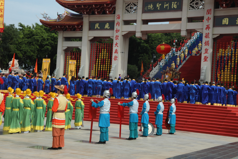 8时30分,本届旅游节开幕式开始。莆田市领导向远道而来的泰国前总理川•立派、博茨瓦纳驻华大使巴特朗•塞雷马等来宾表示欢迎。随着三通鼓响,礼炮轰鸣,庄重的妈祖祭典拉开序幕。