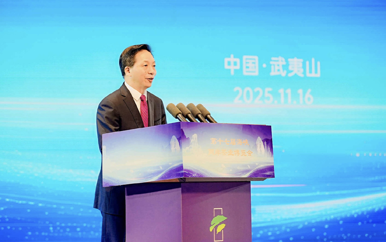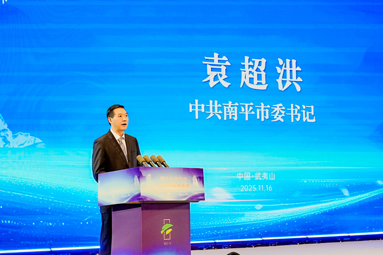 袁超洪代表市委、市政府向出席活动的领导和嘉宾表示欢迎和感谢。他说,近年来,我们始终牢记嘱托,坚持生态优先、绿色发展,全力打造“三茶”统筹发展先行区,持续深化南台茶业交流合作,武夷茶已成为连接两岸亲情、促进心灵契合的绿色纽带。我们将深入学习贯彻党的二十届四中全会精神,借助茶博会平台,与各界朋友加强交流交往,深化对接合作,为推动“三茶”统筹高质量发展和两岸融合发展贡献更多南平力量。